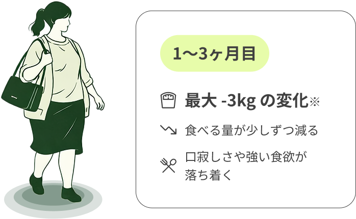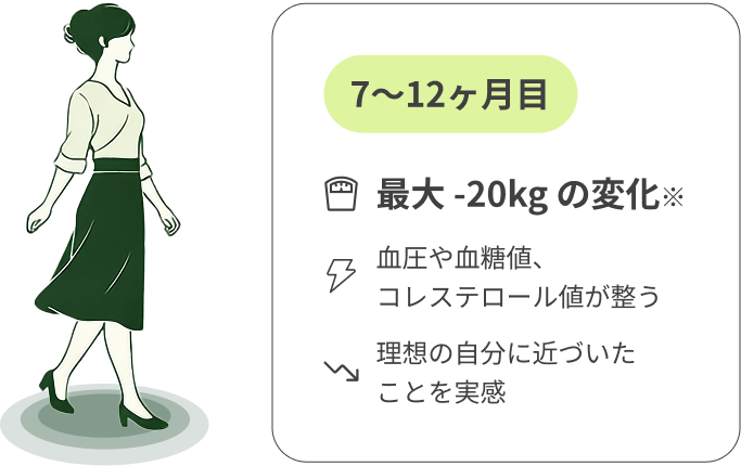 多くの方は、お薬を使用して健康的なBMIやご自身にとってちょうど良い体重に到達した後も、安心してプログラムを継続いただけます。