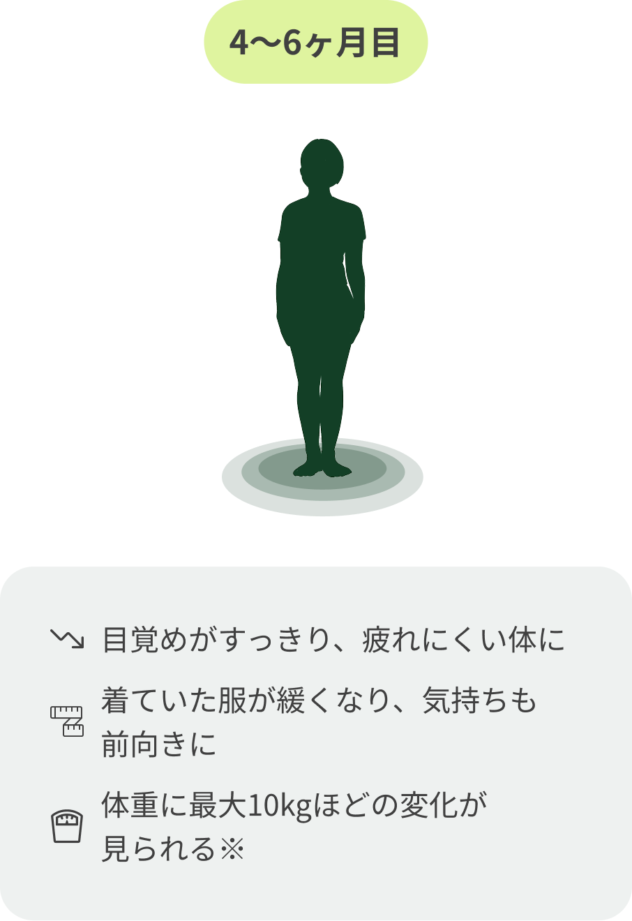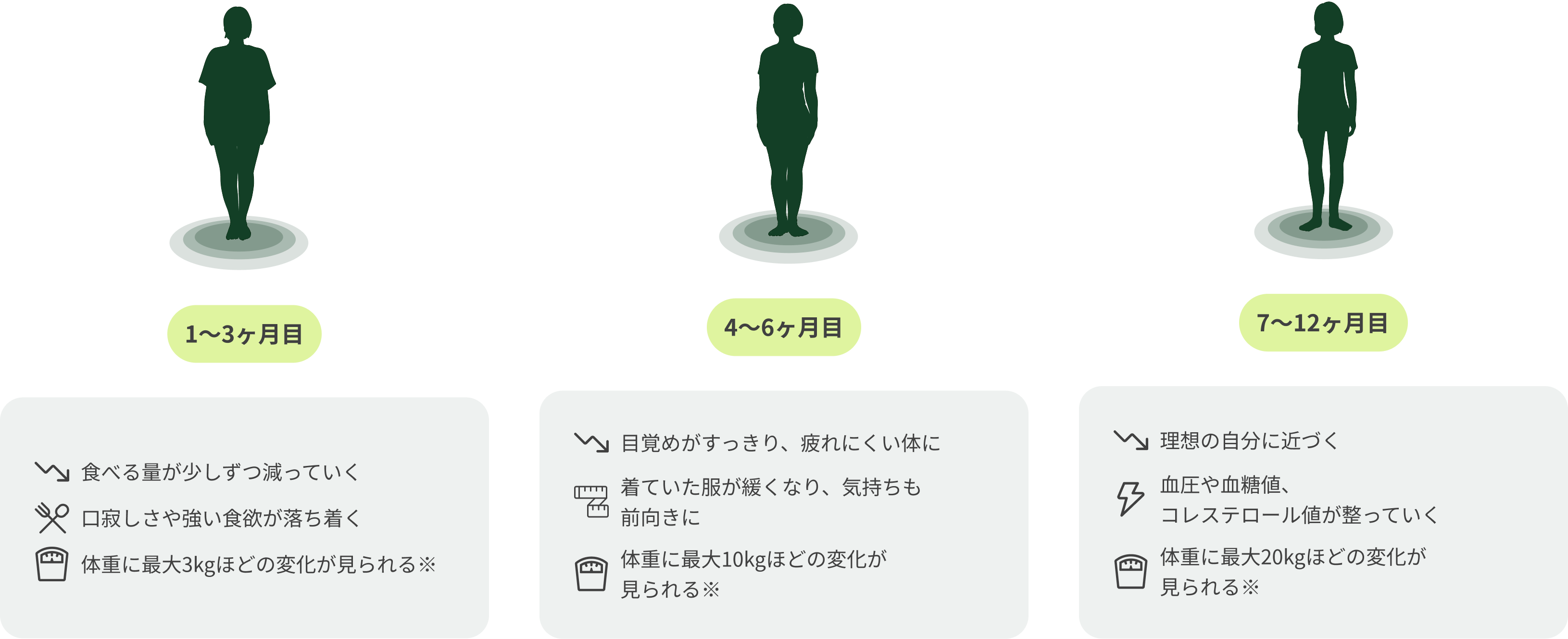 私たちのプログラムは、初期の減量サポートだけでなく、その後の体重維持までを見据えて設計されています。