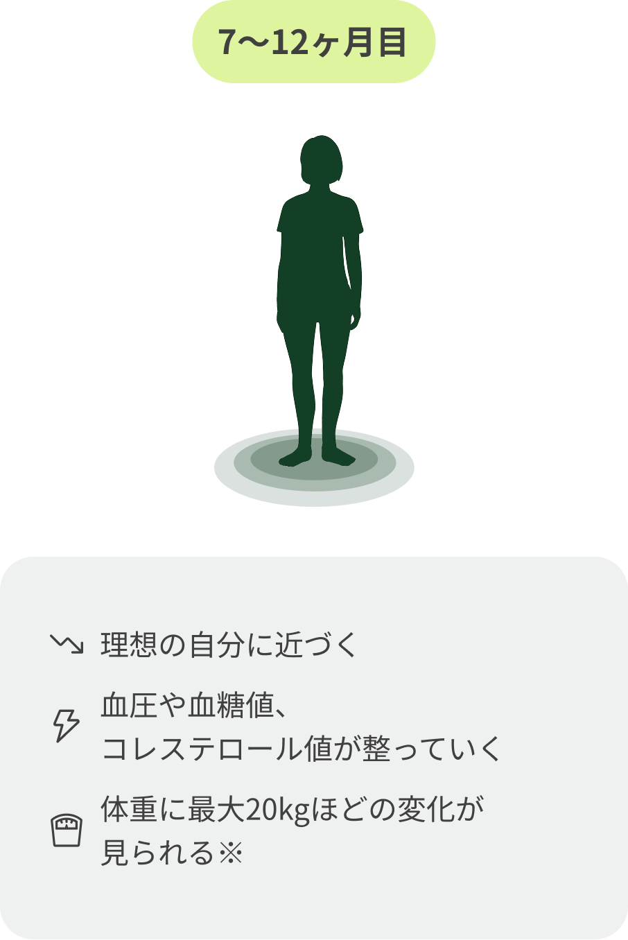 多くの方は、お薬を使用して健康的なBMIやご自身にとってちょうど良い体重に到達した後も、安心してプログラムを継続いただけます。